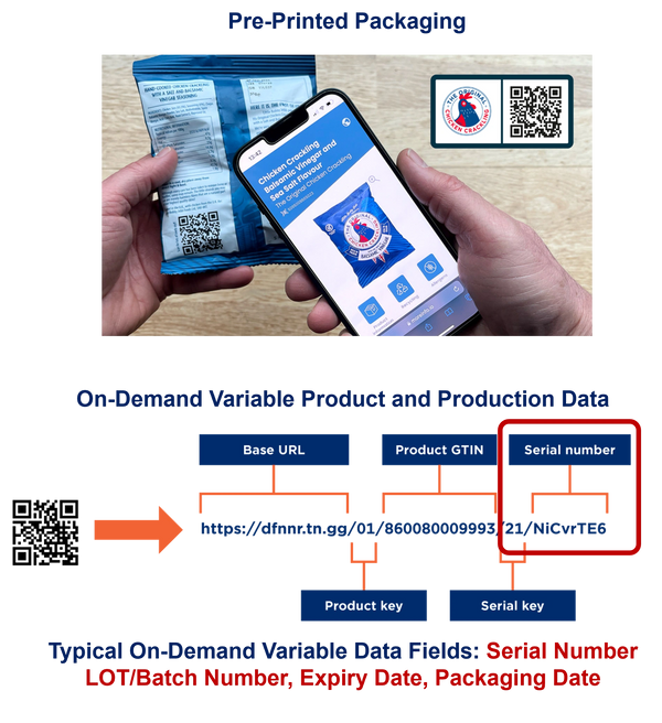 Products that will use only the Base URL, Product Key & Product GTIN may be printed as part of the product packaging artwork as the information is static data printed without the need for additional production data information.